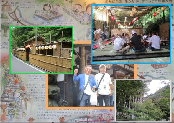 川床で川のせせらぎを聴きながら、おいしい京料理をいただきました。