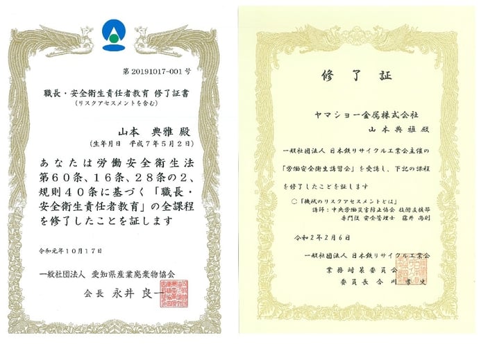 先日、弊社社員が日本鉄リサイクル工業会「労働安全衛生講習会」と