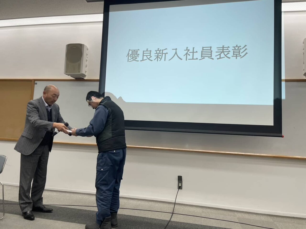 ヤマショー金属では年に一度、新年合同会議の場で、年間を通じて活躍した社員を表彰する「社員表彰式」を実施しています。